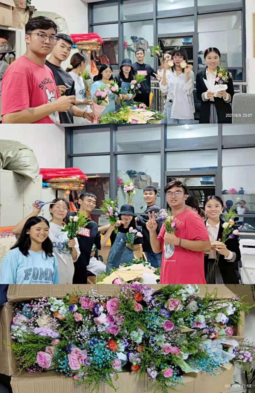 金秋时节,硕果丰存,教书育人,传播知识的老师们迎来了自己的节日——教师节;桃李芬芳的9月,又是一个收获的季节硕果飘香,又是一个期待的九月神采飞扬。2021年的教师节即将来临,为了传承尊敬老师的美德,建筑工程学院团委学生会的同学们在团委老师的带领下,连夜包花束,一直到深夜凌晨,9月10日早晨8:30,同学们纷纷手捧鲜花,亲自送到上课的教室里面,并送上真挚的祝福,收到鲜花的每位老师脸上都洋溢着快乐的笑容,让辛勤的教师们感受到节日的幸福。