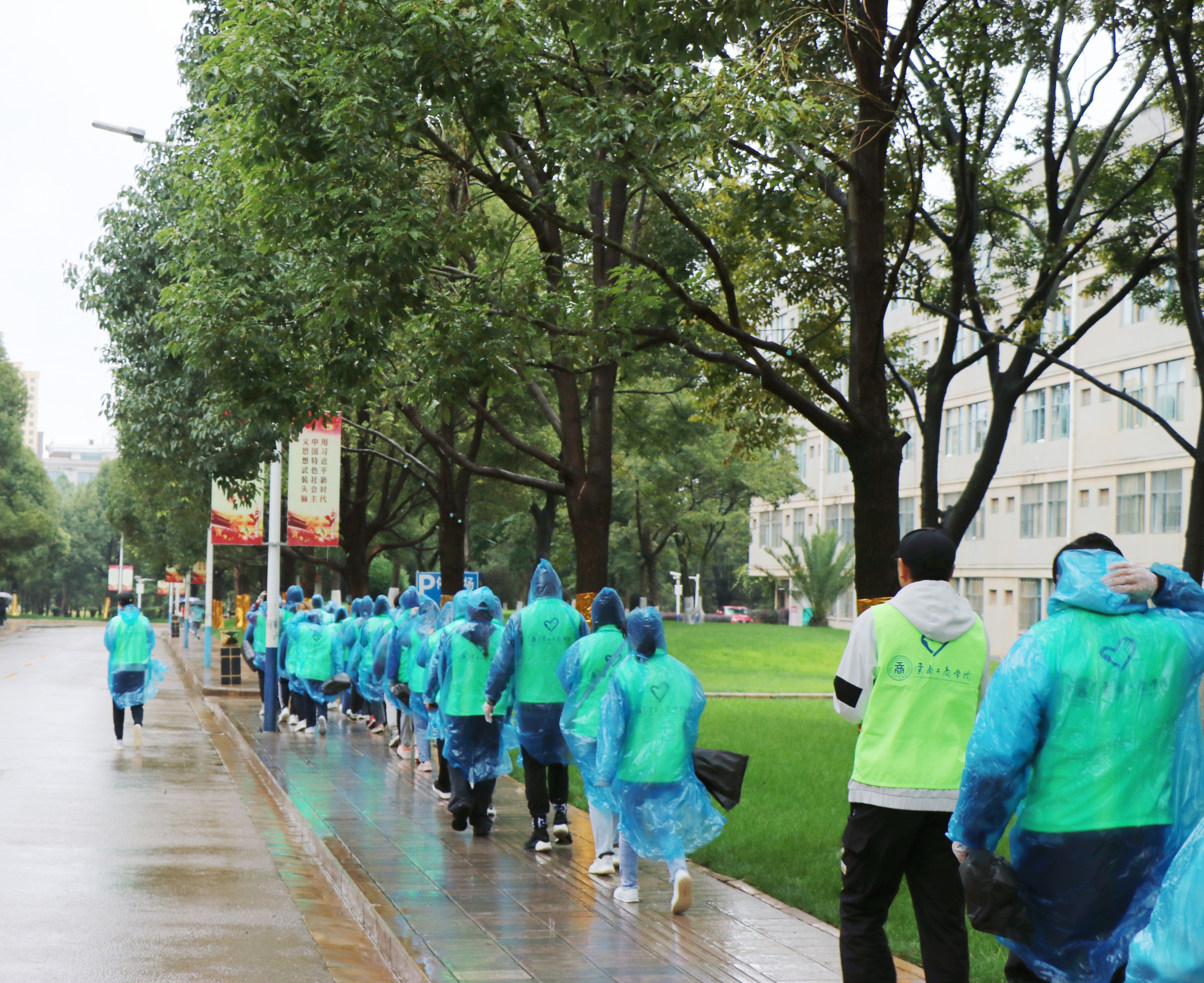 志愿者们在体育馆门口集合签到,负责人说明注意事项后,分发好物资,活动正式开展。此次活动形式将小树林分为五个小区域。每个区域由各自小组长带领,志愿者们对小树林进行全方位的清理。凉风微作,细雨随风,一个个身穿绿马甲的志愿者们穿行在小树林间,手提塑料袋仔细翻找着与绿茵格格不入的垃圾存在,即使气候微凉,细雨相伴,雨滴毫无防备般的打湿他们的衣服鞋袜,但为校园环境做贡献的快乐已然让他们忘却了晓风凉意给他们带来的烦恼。