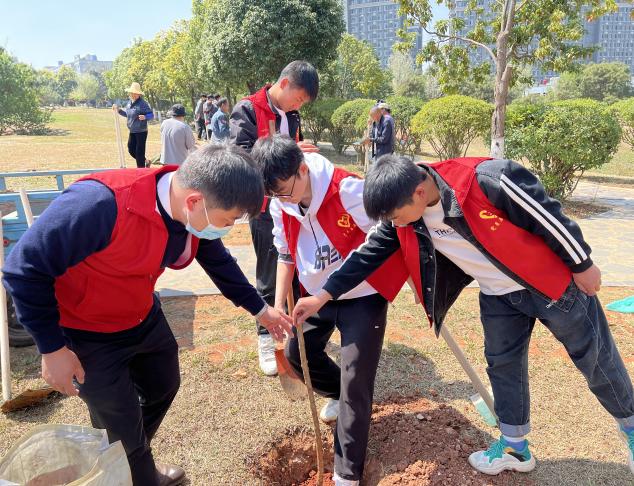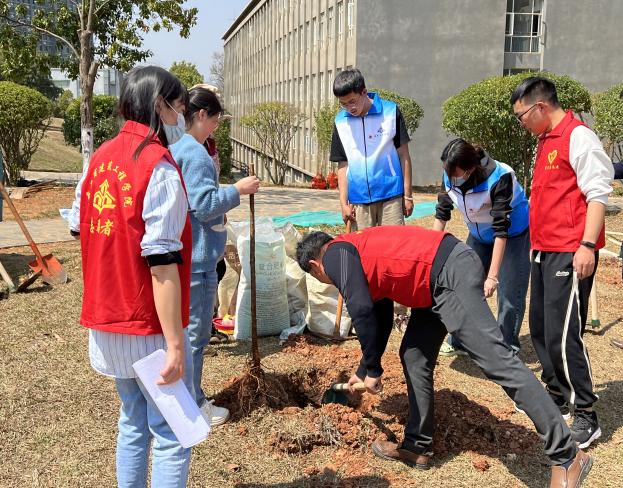 阳春三月,草长莺飞。我们又迎来了一年一度的植树节。本次活动在党支部书记赵老师及各位领导的带领下有序开展,全体党员全部植树活动。活动前我们统一着党员志愿服装,统一佩戴党员徽章,活动由各级学院党总支、支部、团委及党委领导共同组成。集合完毕后我们一起向着植树地点校园植树地进发。