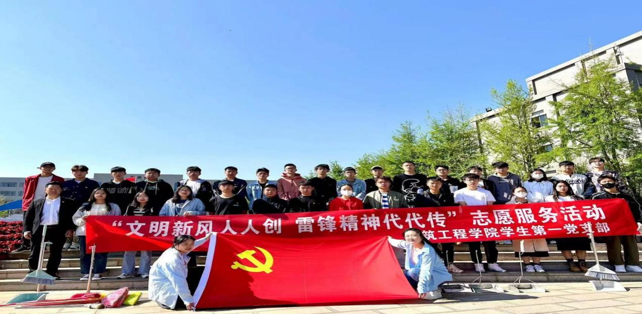 建筑工程学院学生第一党支部于2023年4月1日组织了“文明新风人人创,雷锋精神代代传”志愿服务活动,秉着传承弘扬雷锋精神,践行志愿服务的理念,组织学生党员和积极分子在校园内外开展环境卫生清扫志愿服务活动,用实际行动守护校园环境和周边环境。