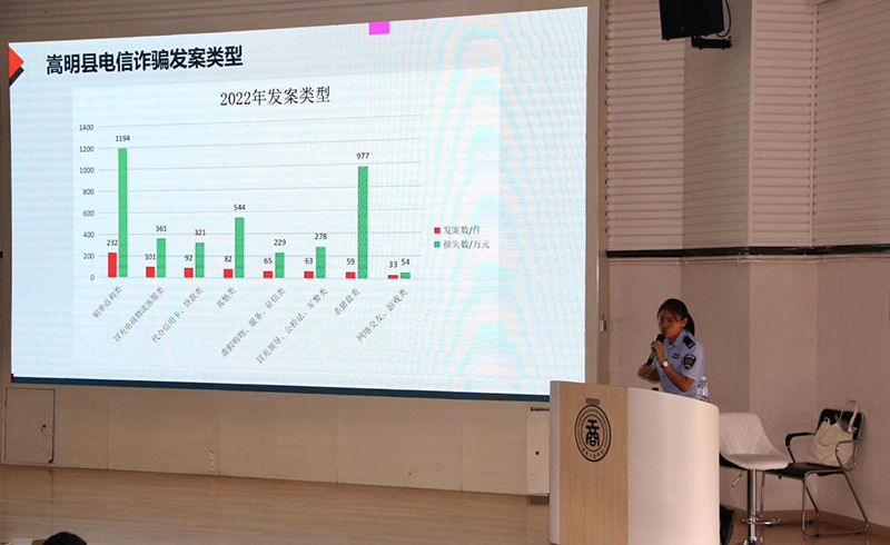 讲座过程中,谢警官深入浅出、生动形象地讲授了什么是电信网络诈骗;科普了常见的法条内容;通过身边的案例分享,给新生们指导常见的电信诈骗形式;引导新生如何识别和防范电信诈骗;最后科普了“金钟罩”反诈小程序的使用方法和好处。