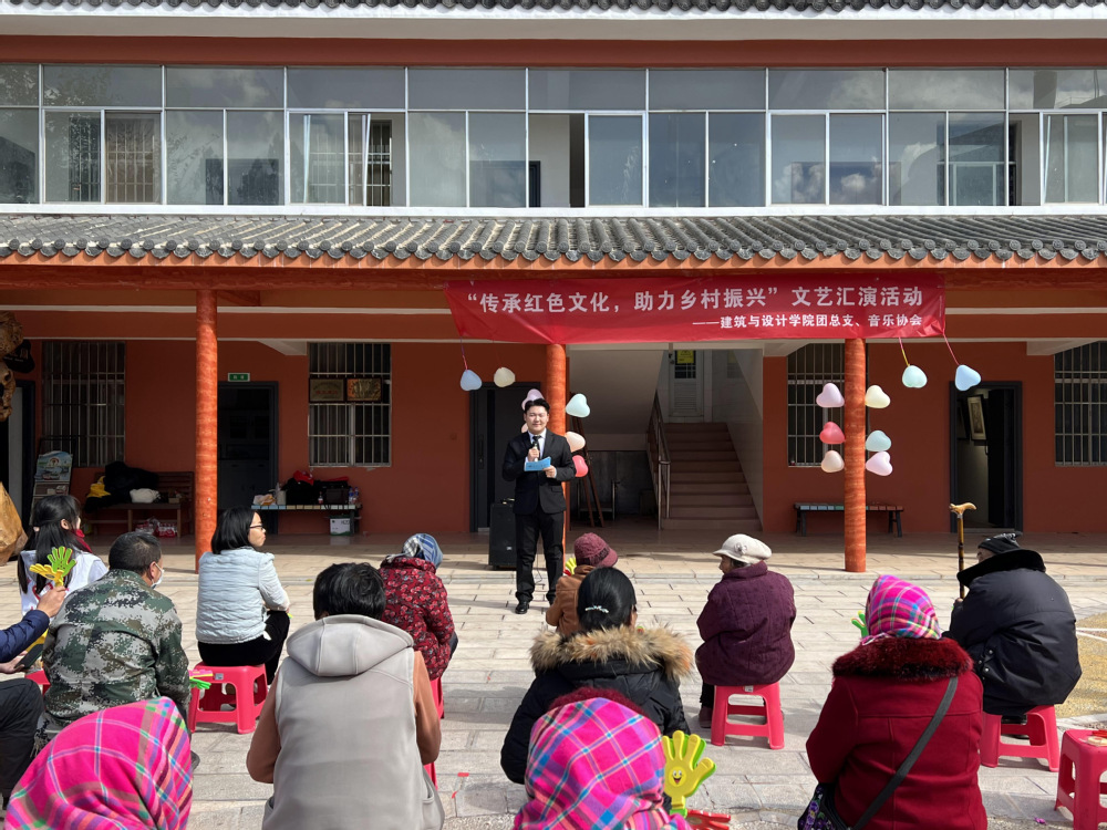 为深入学习党的二十大精神、巩固习近平新时代中国特色社会主义思想,强化学生社会实践能力,2023年12月29日,云南工商学院建筑与设计学院党总支、学生第一党支部、团总支及音乐协会联合开展了以“传承红色文化,助力乡村振兴”为主题的社会实践活动。上午9点,师生一同乘车到达嵩明县东村社区,此次实践活动共有四项行程安排。