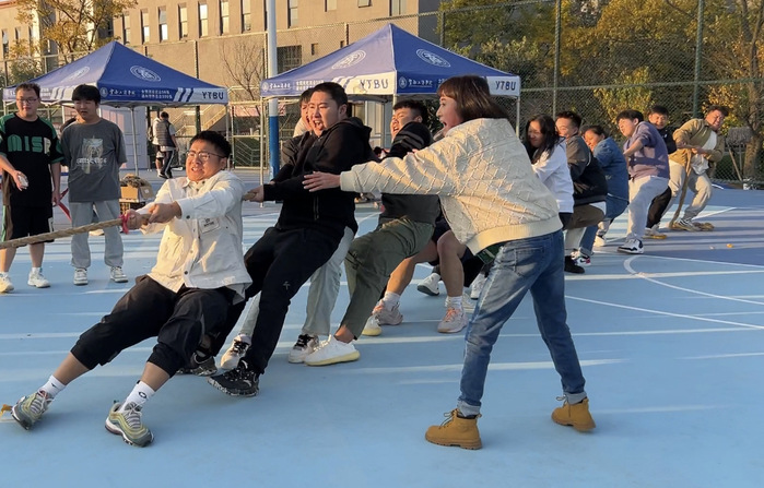为树立健康第一的育人理念,提高班集体团结友爱、互帮互助的友爱氛围,提高班级凝聚力,丰富学生的课余文化生活。2023年11月27日下午,由建筑与设计学院团总支组织的“师生共奋进”主题拔河比赛在小板房旁边的篮球场拉开帷幕。本次比赛共有25支队伍参加,各队都派出了最强阵容,力争在比赛中取得好成绩。