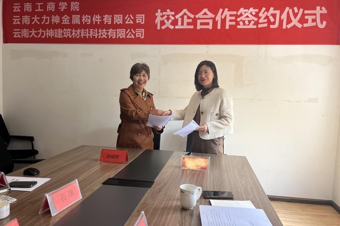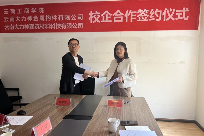 在校企双方领导的共同见证下,学校与云南大力神金属构件有限公司、云南大力神建筑材料科技公司共同签署“校企产学研长期合作框架”协议。