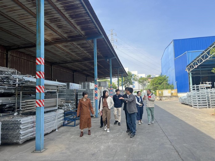 会前,与会学校观摩云南大力神金属构件有限公司,孙成林董事长全面介绍公司脚手架产品体系、研发、生产流程、工艺及所获荣誉等情况。