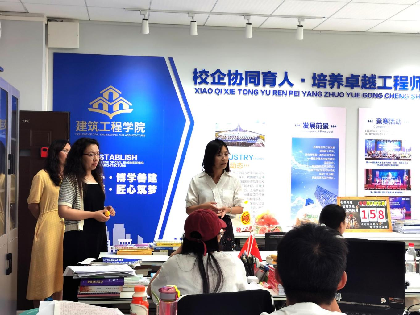 在炎炎夏日的假期,建筑与设计学院内依然充满着奋进的气息。学院领导班子始终牵挂着假期中全力备战国赛的师生以及留校学习的考研班学子。为此,由周丽萍院长带队,成员包括土木系系主任和金兰老师、工造系系主任席悦峰老师、办公室主任陈学丽老师以及副主任张彩雄老师等7名老师,组成了慰问队伍,开展了一场饱含关怀与温暖的慰问活动。