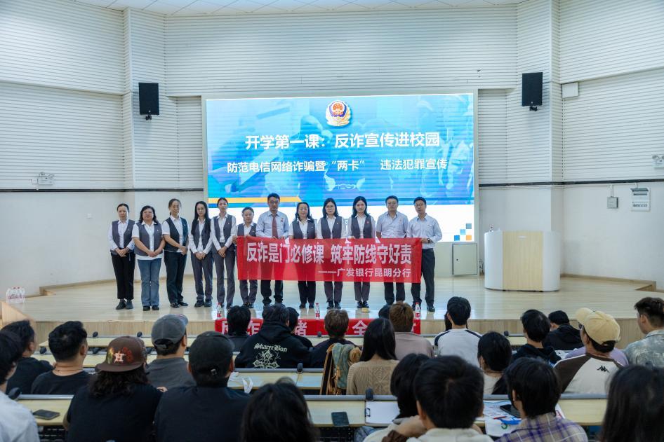 为进一步增强学生防范电信网络诈骗的意识和能力,营造安全、稳定的校园环境,9月22日—25日,云南工商学院建筑与设计学院联合嵩明县反诈中心、广发银行在阶梯教室成功举办了一场主题为“提高自我防范意识,谨防电信诈骗”的反诈知识宣传讲座。