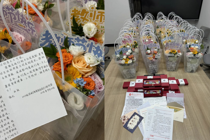 收到礼物与手写信的教师们既惊喜又动容,纷纷表示,这份“手写的真情”是教师节最珍贵的礼物,深刻感受到了学院的用心与学生的真诚。大家表态,将带着这份温暖与认可,继续坚守教育初心,践行“四有”好老师标准,以更饱满的热情投入教学育人工作,做学生成长路上的良师益友,为学院发展贡献力量。