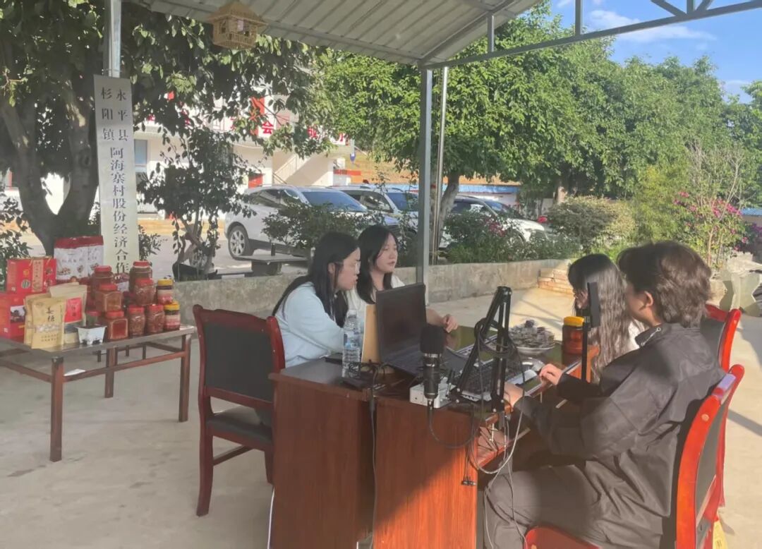 张泽鹏老师一行带领4名2025届毕业学生深入永平县杉阳镇阿海寨,积极投身当地特产直播带货工作。腌菜、核桃软糖、红糖、姜糖、豆腐乳等特色农产品,在学生们生动地介绍下,通过直播平台走进大众视野。此次直播带货活动,不仅帮助当地农户拓宽了销售渠道,助力乡村振兴,更为学生们搭建了宝贵的实践平台。学生们在实践中锻炼了沟通表达、市场营销等能力,将专业知识与实际应用相结合。同时,学院借此契机与当地建立党建联建合作关系,未来将在实习就业、直播助农等方面开展长期合作,实现校地双赢。