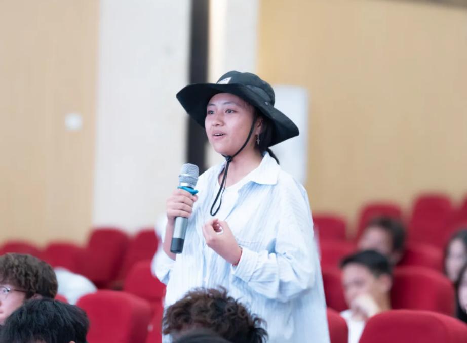 分享会特设15分钟互动环节,同学们争相提问:“在大学期间如何快速提升自己的专业能力?”“设计师该如何应对AI带来的职业挑战?” “在职场中如何保持创作热情?”李珺河校友结合自身经历耐心解答,金句频出:“设计不仅是技能,更是解决问题的思维方式”“要像设计师一样思考,但不要被设计师的身份局限”。互动环节氛围热烈,学弟学妹们纷纷踊跃举手向学姐请教提问。