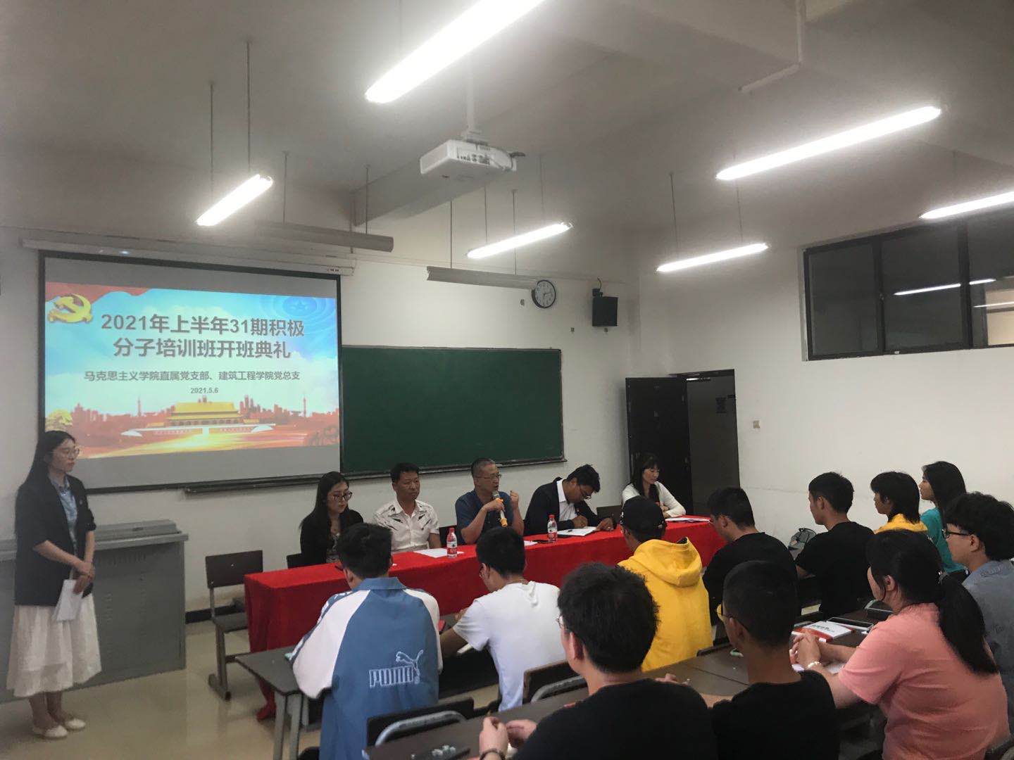 2021年5月6日下午6点,马克思主义学院直属党支部和建筑工程学院党总支在至善楼405教室举行2021年上半年第31期入党积极分子培训课开班典礼,到会的领导有马克思主义学院书记王之敬,副书记勾英,建筑工程学院总支副书记陈云鹏,第一学生支部书记赵应先、学生第二支部书记张玉珊,专职组织员王琳,学生党员代表和72名入党积极...