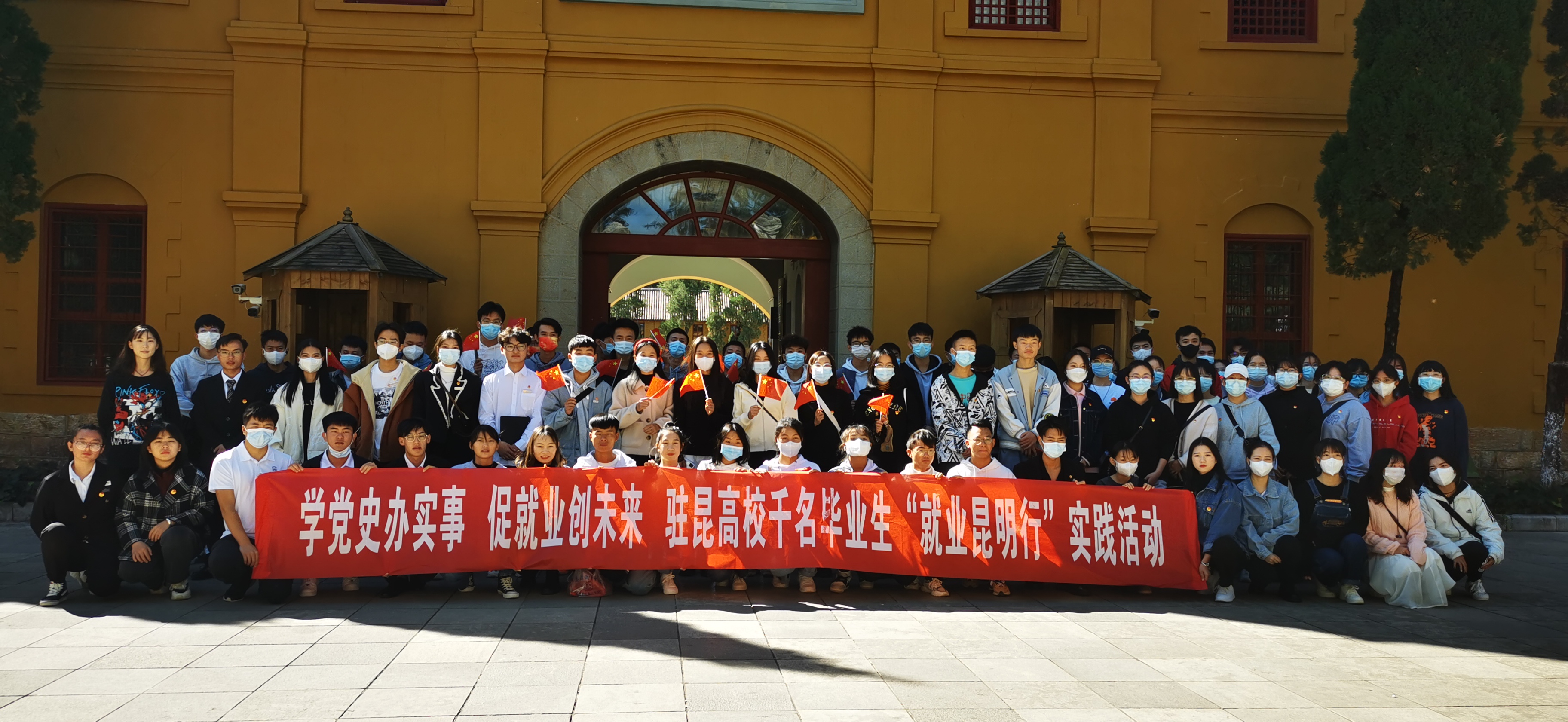 活动时间:2021年11月11日活动地点:昆明市五华区陆军讲武堂活动人员:学生党支部代表党员、共青团员代表19人 活动宗旨: 为了努力践行“学史明理·学史增信·学史崇德·学史力行”的青春目标,不断深化和领会党史学习的教育意义,聚焦中国共产党成立100周年的历史伟大时刻。通过学党史办实事,促就业创未来,驻昆高校千名毕...